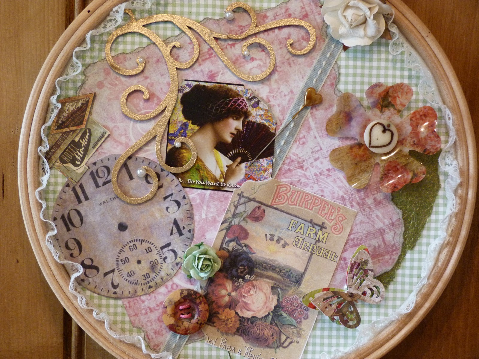 Have had a wonderful morning helping my mum make a gorgeous vintage collage…just love this sort of thing…lots of bits and bobs which when all added together look fab.